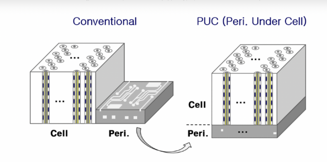 SK Hynix называет свои недавние многослойные продукты NAND - «4D», поскольку в них используются периферийные схемы под массивом ячеек, метко названные технологией peri under cell (PUC). В этой конфигурации слои считаются «трехмерными», а периферийная проводка считается другим измерением, хотя на самом деле это не так.