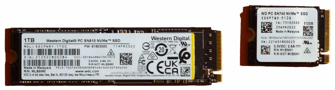 Также есть два разъёма PCIe 4.0 M.2: один 2280 с возможностью подключить накопитель объёмом до 8 ТБ, другой 2230 с поддержкой накопителей вместимостью до 2 ТБ. В комплект поставки ноутбуков будут входить накопители Western Digital SN810 со скоростью последовательного чтения данных до 6,6 ГБ/с.