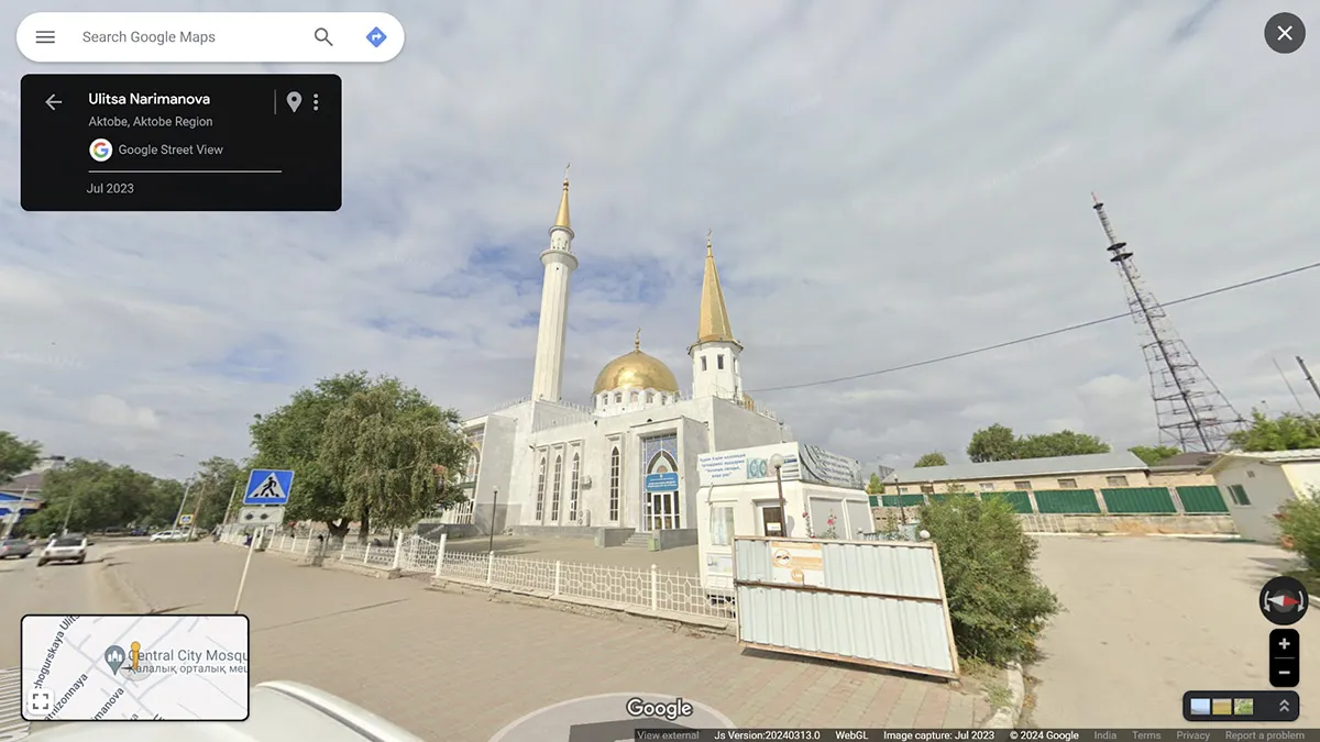Изображение Центральной мечети Актобе, сделанное нашим автомобилем Street View