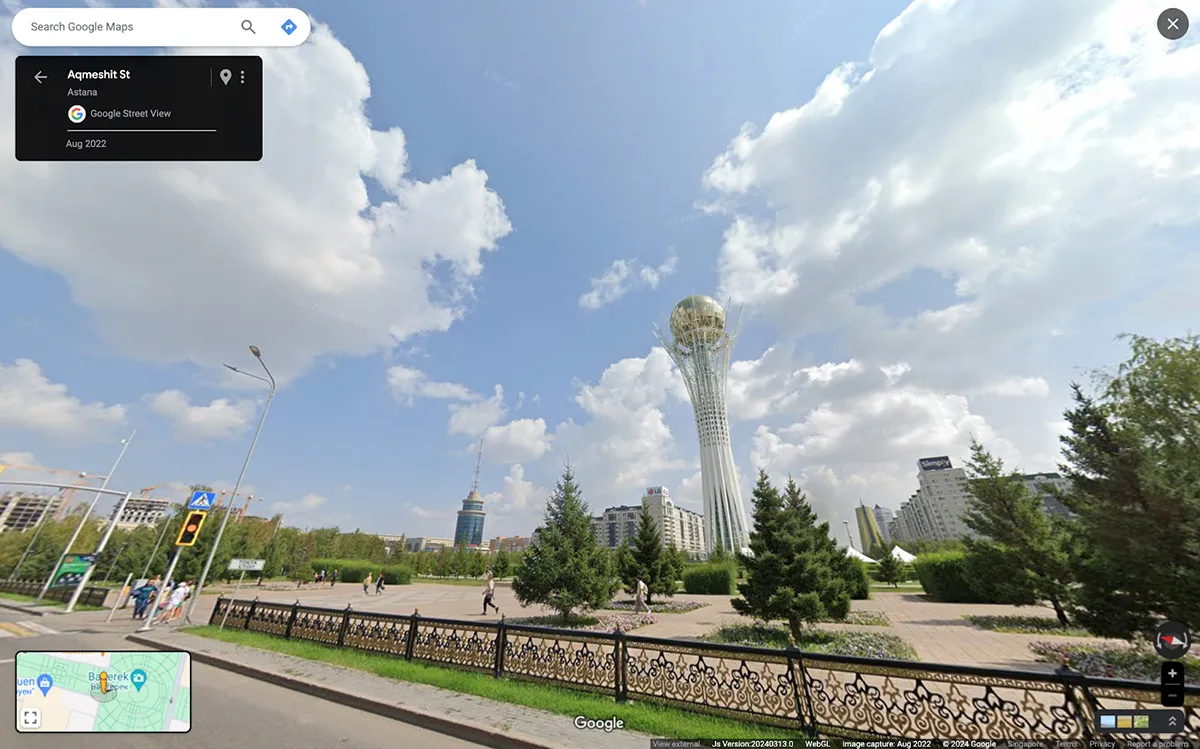 Изображение Байтерека, сделанное нашим автомобилем Street View