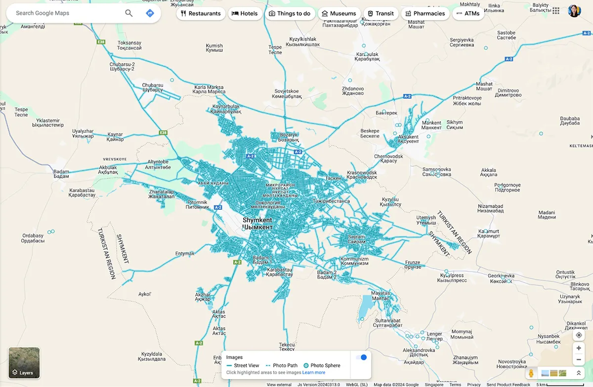 Когда автомобили Street View пересекали Казахстан, они ехали по следам торговцев Великого Шелкового Пути, служившего центром торговли и культурного обмена. Благодаря обновлению изображений маршрутов вокруг таких городов, как Сарыагаш, Шымкент и Тараз, игравших ключевую роль на торговом пути, Google способствует цифровой трансформации и экономическому развитию Казахстана, обеспечивая доступность этой информации для предприятий и поставщиков транспортных услуг.