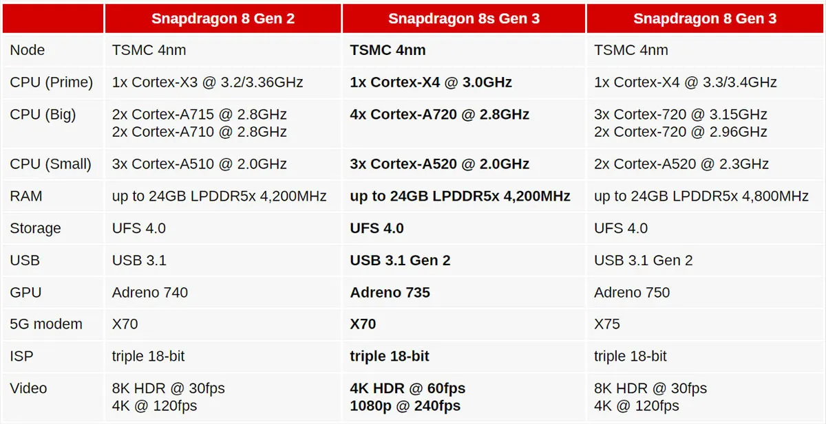 Qualcomm представила новый "нардный" процессор Snapdragon 8s Gen 3, который, несмотря на свою принадлежность к последней флагманской серии, по характеристикам и цене ближе к Snapdragon 8 Gen 2, что откроет новые горизонты для средне-бюджетных и субфлагманских устройств, пишет сайт GSMArena.com.
