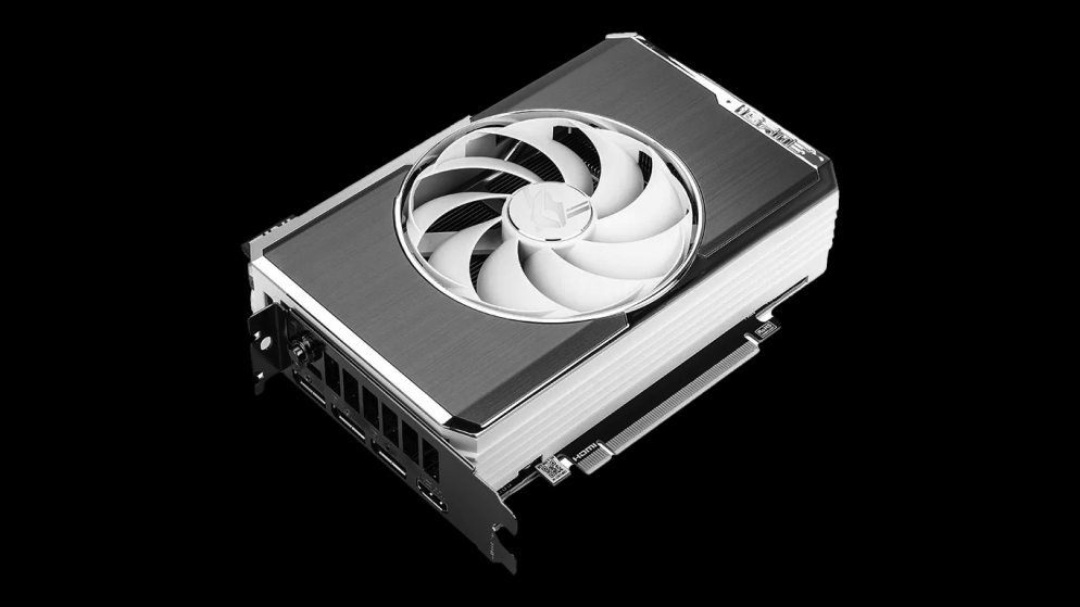 Компания Colorful назвала эту видеокарту iGame Mini и предлагает ее в конфигурациях с 8 и 16 ГБ видеопамяти и заводским разгоном. Благодаря матовому металлическому корпусу и белой задней панели, этот дизайн больше подходит для скромного офисного компьютера, чем для игрового ПК с RGB-подсветкой. Двухслотовая видеокарта довольно компактная, ее ширина составляет почти 15 сантиметров, так что она, будет заниматься значительную часть маленького корпуса и возможно усложнит циркуляцию воздуха. Ее длина составляет чуть менее 20 см, поэтому она примерно на 5 см короче стандартных видеокарт RTX 4060 Ti. Возможно, ее будет непросто вместить в некоторые корпусы форм-фактора Mini-ITX, но насколько нам известно, это первая в мире игровая видеокарта с 16 Гб видеопамяти, охлаждаемая одним вентилятором.
