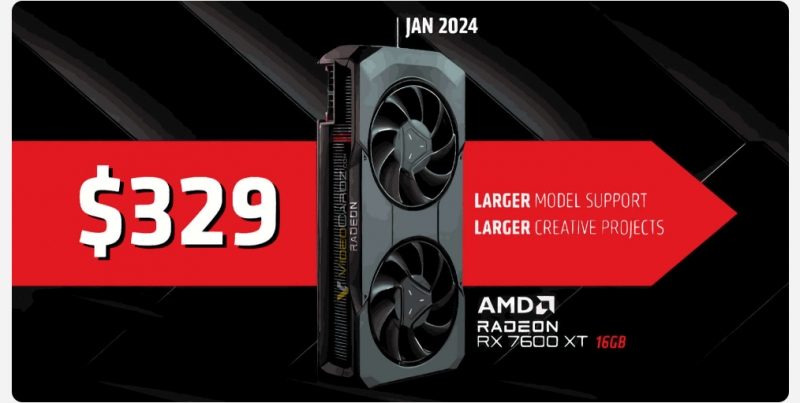 AMD также подтвердила информацию о выходе Radeon RX 7600 XT 24 января. Стоить новинка будет 329 долларов, что на то 30 долларов больше, чем самая дешевая модель GeForce RTX 4060, но на 55 долларов дешевле, чем RTX 4060 Ti 8 ГБ.