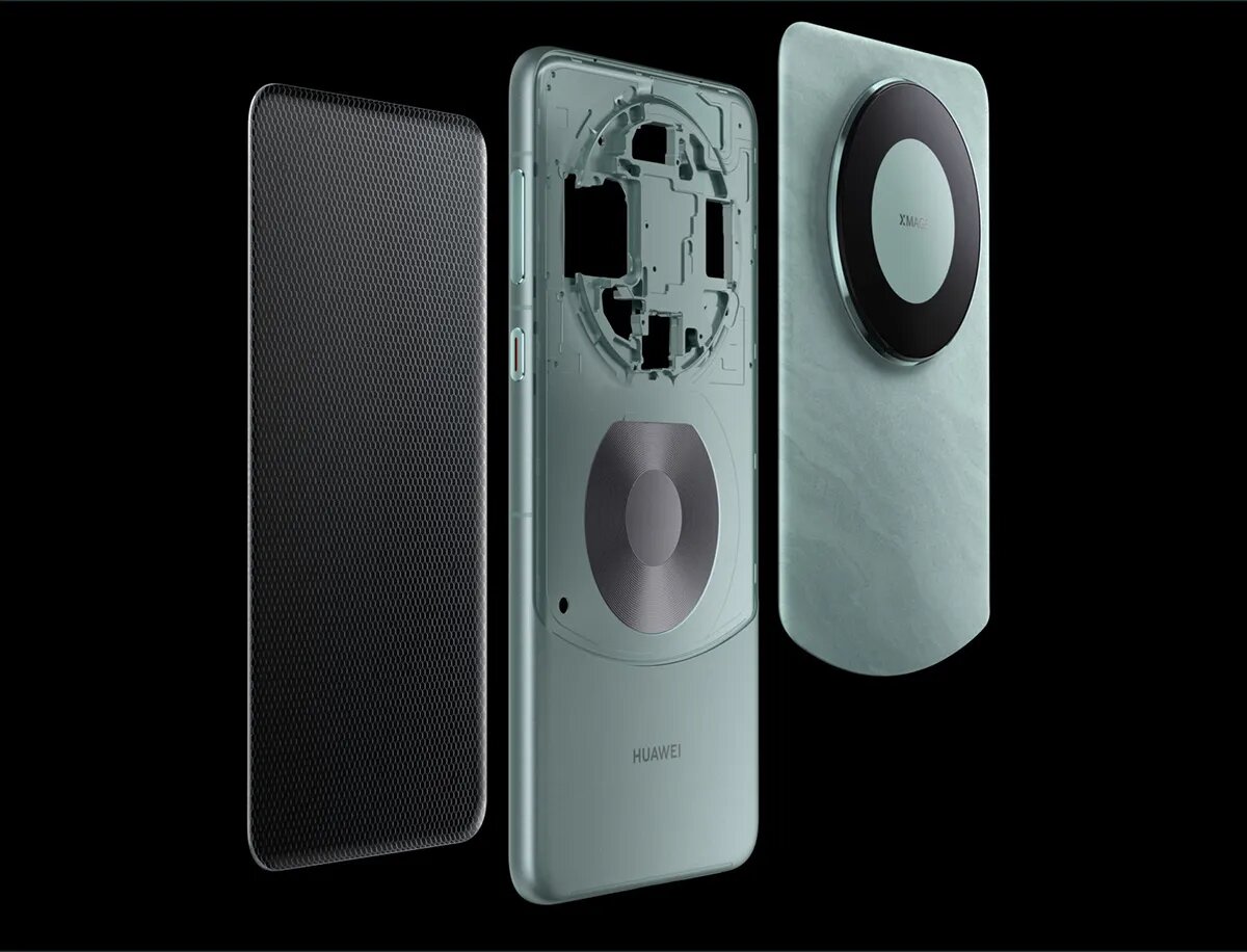 С задней панели, в зависимости от версии, можно увидеть покрытие из розовой и черной кожи, зеленой керамики и белого стекла. Смартфон совместим с NM-картами памяти объемом до 256 ГБ. Присутствует защита от воды и пыли IP68. Устройство также включает в себя стереодинамики, сканер лица и подэкранный сканер отпечатков.