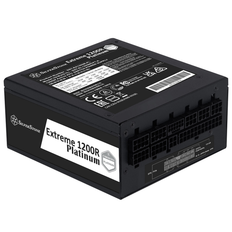 SilverStone Extreme1200R Platinum обеспечивает мощность 1200 Вт, используя одну шину +12 В 100 А, с номинальной эффективностью переключения Cybenetics Platinum. Он оснащен полностью японской конденсаторной конструкцией с наиболее распространенными электрическими защитами от превышения/понижения напряжения, перегрузки, перегрева и короткого замыкания. Для охлаждения используется 120-миллиметровый вентилятор с гидродинамическим подшипником. Разъемы включают 24-контактный ATX, два 4+4-контактных EPS, 600 Вт 12V-2x6, четыре 6+2-контактных PCIe, восемь SATA, три 4-контактных Molex и Berg. Компания не сообщила цены.