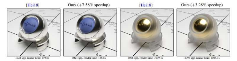 В другом документе сообщается о 500-процентном увеличении скорости рендеринга «блестящих» объектов, таких как автомобильная краска, снег, литой пластик и проточная вода. «Визуализация блестящих образов в реальном времени с использованием распределенных биномиальных законов на анизотропных сетках» объясняет, что современные подходы достигают потрясающего реализма, но «имеют очень высокую цену» с точки зрения вычислительной мощности и скорости.