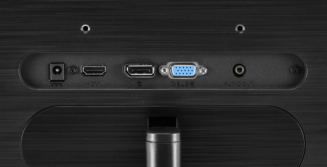 Все разъемы находятся на тыльной стороне монитора, что доставляет неудобства при использовании креплений VESA. Если пользоваться монитором на подставке, то этот момент остается незамеченным.