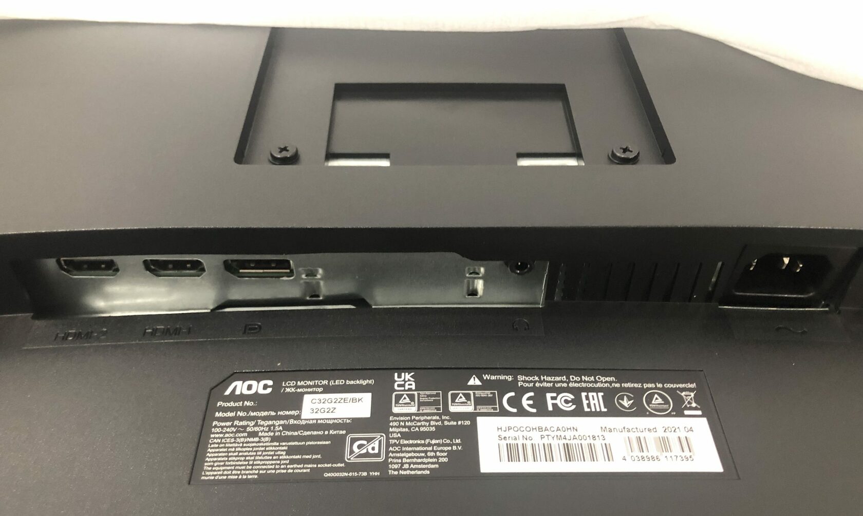 AOC C32G2ZE изготовлен из экологически чистых материалов, не содержащих свинец и ртуть, и соответствует стандартам сертификата RoHS.