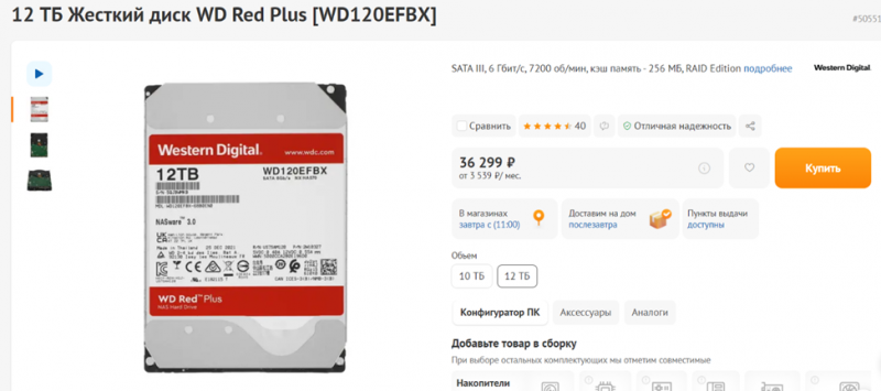 Но вернемся к рассматриваемой модели. Она быстрая, беспроблемная и не шумная — если выставить режим максимальной производительности и запретить диску отключаться. Сам я являюсь обладателем двух таких накопителей — используются они для хранения медиаколлекции и черновиков для видеороликов, а также работы с генеративными нейросетями, создающими большие объемы контента. В настоящий момент WD181PURP – один из наиболее выгодных вариантов. И лучше купить один жесткий диск на 18 терабайт, чем 3 по 6 – шума и вибраций будет меньше.