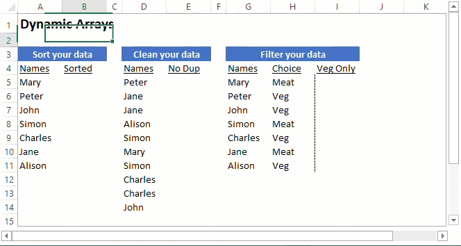Динамические массивы (Dynamic Arrays) — революционное нововведение в Excel, позволяющее выполнять вычисления с несколькими ячейками, то есть массивом, так же просто, как с одной ячейкой. Это делает формулы короче, а их расчет — быстрее. Вместе с Динамическими массивами были добавлены и новые функции для работы с ними: СОРТ (SORT), ФИЛЬТР (FILTER), УНИК (UNIQUE) и другие.