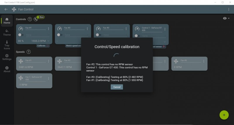 и нам сообщают, что несколько минут будет производится анализ и калибровка выбранных вентиляторов: