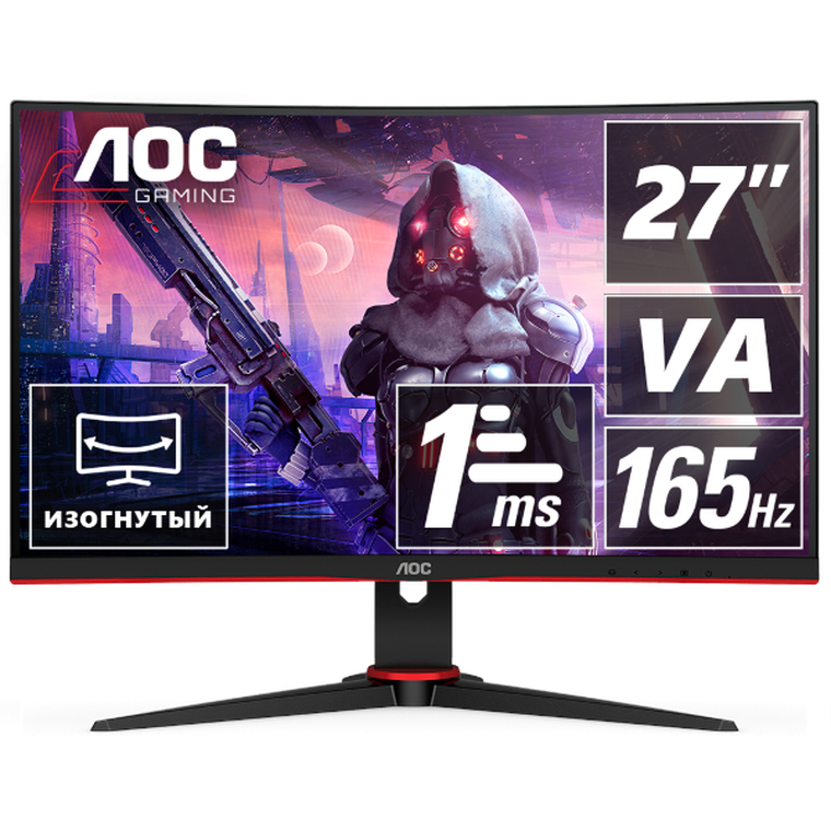 AOC C27G2AE предлагает передовую изогнутую матрицу VA, с диагональю 23,6 дюйма, разрешением Full HD и соотношением сторон 16:9. Несмотря на не самое высокое разрешение, этот монитор обладает высокой частотой обновления кадров в 165 Гц и быстрым временем отклика в 1 мс. Это превращает его в идеальное решение для геймеров, желающих погрузиться в плавный игровой процесс без задержек и размытости кадров.