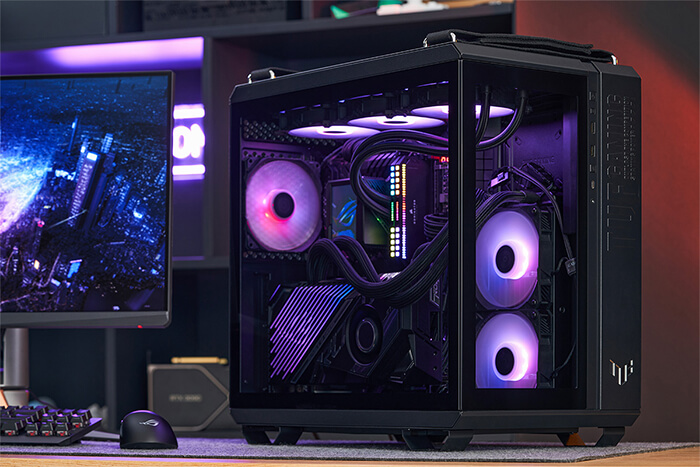 В рамках программы TUF Gaming Alliance компания ASUS совместно со своими партнерами предлагает широкий выбор компонентов, прошедших строгую проверку на совместимость, стабильность и долговечность. Кроме того, они прекрасно дополняют друг друга благодаря единой эстетике исполнения. Сквозь прозрачные панели в передней и боковой частях корпуса TUF Gaming GT502 можно рассмотреть внутренние компоненты системы.