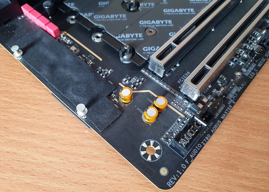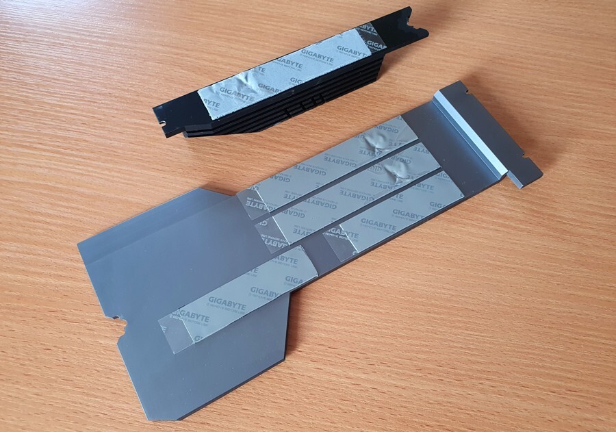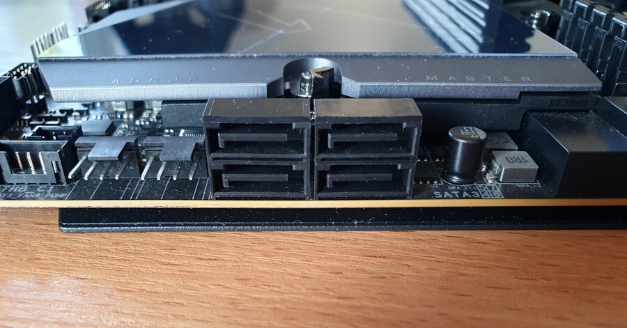 Остальные четыре разъема M.2 получают полноценные 4 линии, но PCIe 4.0, и никаких ограничений не имеют. Самый нижний разъем, к тому же, поддерживает не только PCIe-накопители, но и те, что имеют интерфейс SATA. Для классических SATA тоже нашлось место, но их количество инженеры Gigabyte разумно сократили до четырех. При таком количестве M.2 даже это выглядит несколько избыточно.
