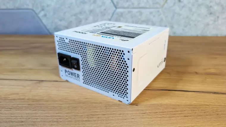 Удивляют небольшие габариты: 14х15х8,6 см. Блок не совсем крошечный, но ему точно не будет тесно в большинстве даже экзотических корпусов, а прокладка кабелей и их подключение не превратится в задачку по геометрии. Решётка для вентиляции большая, без сложного дизайна, зато функциональная. На задней панели — стандартный выключатель. Видно, что конструкция продумана: сборка аккуратная, металл ровный, окраска качественная. Последнее хорошо заметно именно на белой версии.