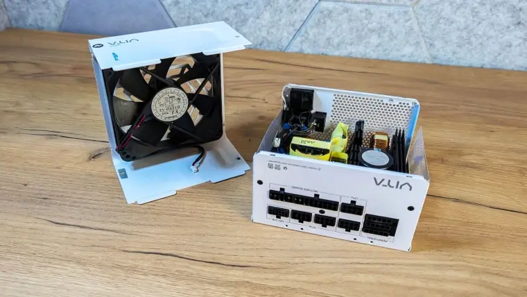 И так, что у нас тут внутри. Отметим, что конструкция выглядит аккуратной и чистой, с несколькими электролитическими конденсаторами на вторичной стороне, которые обеспечивают беспрепятственный воздушный поток. Радиаторы небольшие, особенно на вторичной стороне, где 12-вольтовые полевые транзисторы расположены со стороны пайки печатной платы. Качество пайки — одно из лучших, что мне доводилось видеть в современных киловатниках, и оно уж точно не скажется негативно на производительности. Детали, использованные FSP, высокого качества, хотя некоторые опасения вызывает вентилятор. Yate Loon умеют делать хорошие вертушки, и у FSP VITA GM 1000W заявлен вентилятор с гидродинамическим подшипником. Но качество иногда сильно меняется от устройства к устройству. Посмотрим, возможно, FSP отобрали для себя самое лучшее.