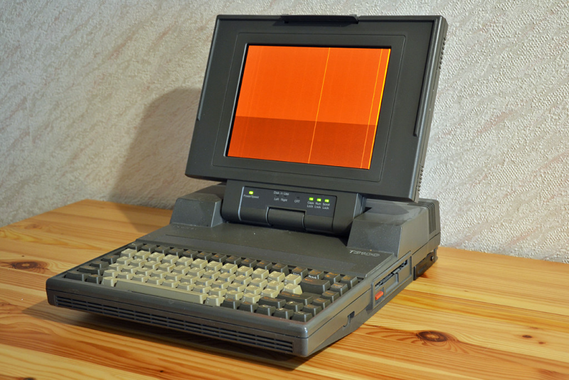 Toshiba T3100 был выпущен в 1986 году и стал одним из первых ноутбуков, использовавших жидкокристаллический дисплей. Это был довольно мощный для своего времени девайс с процессором Intel 80C88 с частотой 8 МГц, оперативной памятью объемом 512 КБ и жёстким диском объёмом 10 или 20 МБ.