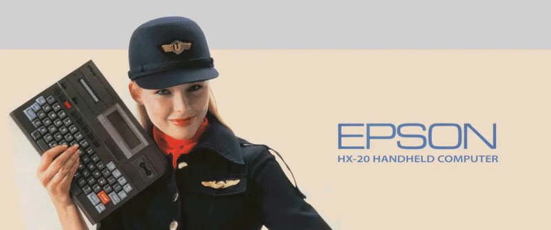 Epson HX-20 увидел свет в 1981 году и поступил в продажу в 1983, став одним из первых настоящих портативных компьютеров, когда понятия "ноутбук" ещё даже не существовало. Это было довольно компактное устройство, которое, благодаря отсутствию полноразмерного экрана, весило всего 1,6 кг и имело габариты 29 x 24.5 x 4.4 см.