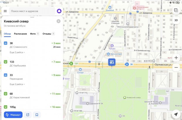 С помощью этого приложения можно проложить разные варианты маршрутов: для поездки на машине, на общественном транспорте или пешком. Яндекс Карты позволяют в режиме реального времени изучить ситуацию на дороге на предмет пробок или аварий. В крупных городах можно узнавать, как быстро подъедет нужный номер автобуса или троллейбуса к остановке.