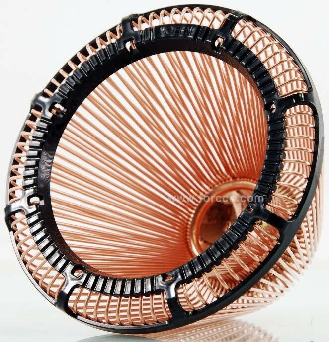 Самый редкий участник нашего текущего теста. Как вы наверное уже знаете, пару лет назад компания NoFan приказала долго жить. И найти ее продукцию сейчас архисложно, особенно новую. Данный кулер был доставлен с EBAY, новым, но с "особенностями" ( его немного пнули при доставке) и поэтому пришлось немного подумать, прежде чем вернуть на место 13 омедненных алюминиевых спиц. А вот основание у кулера медное. С основанием и спицами контактирует одна единственная теплотрубка диаметром 10мм.