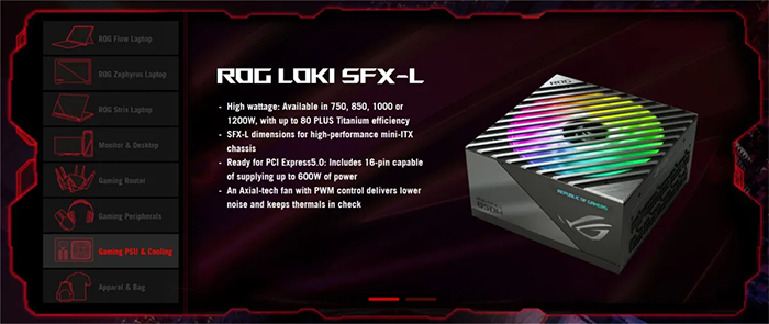 В серии ROG Loki доступны модели мощностью 1200 Вт, 1000 Вт, 850 Вт и 750 Вт с превосходной энергоэффективностью, способные обеспечить питанием даже самые требовательные новейшие геймерские компоненты. Модель мощностью 1200 Вт – самый мощный из представленных на рынке блоков питания формата SFX-L. Этот блок питания создан, чтобы расширить возможности систем компактного форм-фактора. Блок питания ROG Loki 1200 W обладает сертификацией энергоэффективности 80 PLUS Titanium, гарантирующей КПД выше 90% при нагрузках от 10% до 100%.