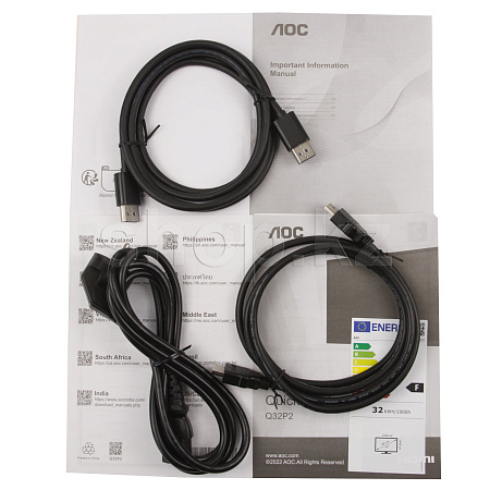 На тыльной и боковой частях монитора расположены разъемы для подключения. Также имеется крепление VESA, если пользователям предпочтительнее устанавливать монитор на стену или регулируемый кронштейн. В целом, дизайн и конструкция AOC Q32P2 заслуживают похвалы, предлагая долговечность и эстетичность.
