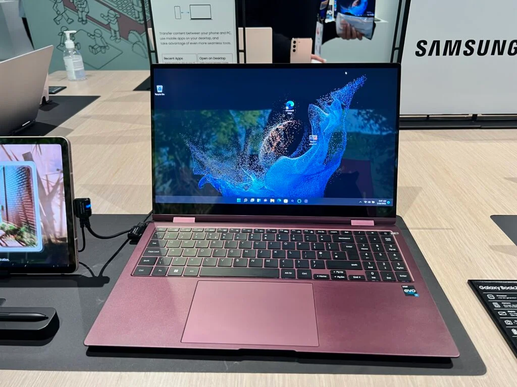 Samsung заявляет, что Galaxy Book2 Go обеспечивает до 21 часа автономной работы во время воспроизведения видео (что, вероятно, является наилучшим плюсом), поддерживает подключение WiFi 6E и предназначен для работы с другими устройствами Samsung Galaxy, включая смартфоны и планшеты. Например, вы можете использовать Galaxy Tab в качестве второго дисплея или устройства ввода с помощью пера для Galaxy Book2 Go, автоматически подключить набор беспроводных наушников Galaxy Buds или синхронизировать заметки на ваших устройствах с помощью приложения Samsung Notes.