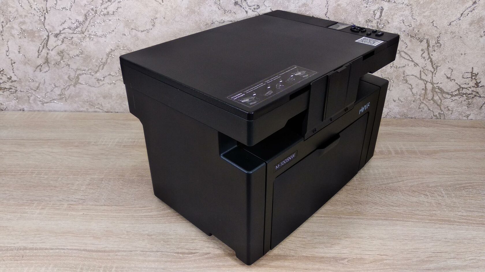 HIPER M-1005NW — недорогое МФУ с дешевой печатью, т.к. есть огромный перечень совместимых картриджей. Используется механика проверенная временем на моделях от HP, вроде 1018, а значит и ремонтопригодность у него высокая. Даже если отойти от этих фактов, перед нами неплохая модель, которая обладает средней скоростью работы, компактными размерами и всеядностью в виде подключений по USB, LAN и Wi-Fi.