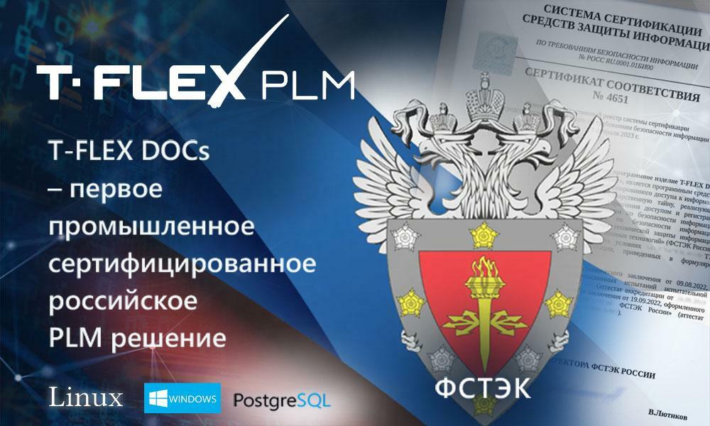Российская компания "Топ Системы" сообщает об успешном завершении процедуры сертификации средств защиты информации и получении сертификата ФСТЭК на ключевой программный продукт платформы T-FLEX PLM систему управления инженерными данными T-FLEX DOCs. Сертификат выдан 8 февраля 2023 года. С этого момента программный продукт T-FLEX DOCs внесен в Государственный реестр системы сертификации средств защиты информации по требованиям безопасности информации. На данный момент это первое и единственное в России промышленное сертифицированное PLM решение, обладающее встроенными средствами защиты информации от несанкционированного доступа, соответствующее 4-му уровню доверия.