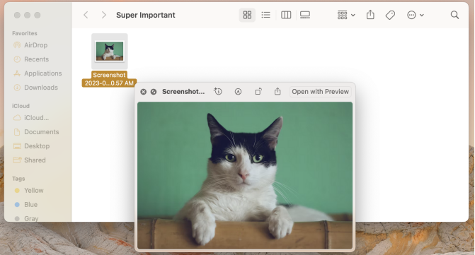 Предварительный просмотр файла с фотографией кошки в Finder.