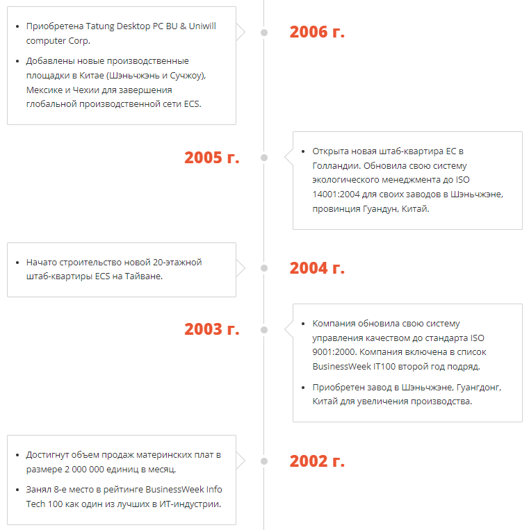 За годы своего существования ECS выпустила ряд знаковых продуктов и инноваций, которые помогли компании стать лидером в индустрии компьютерного оборудования: