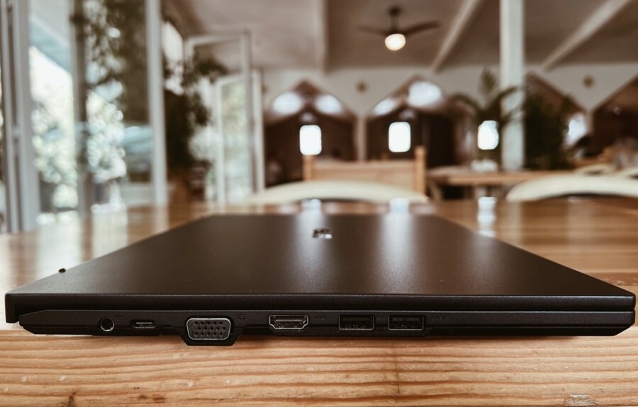 Весит ExpertBook B1 удивительно мало — всего 1,73 кг. Это гораздо меньше похожих по конфигурации моделей конкурирующих компаний. Можно спокойно брать с собой на любое мероприятие со спокойной душой и легкой сумкой, в которой еще останется место под мышку. Толщина корпуса составляет 19,4 мм.