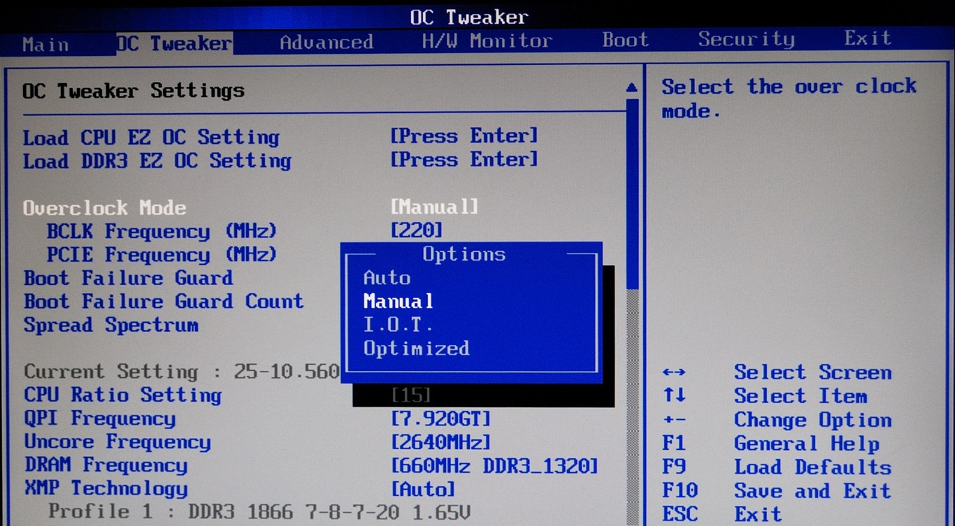Раздел BIOS в котором осуществляется разгон (пример)