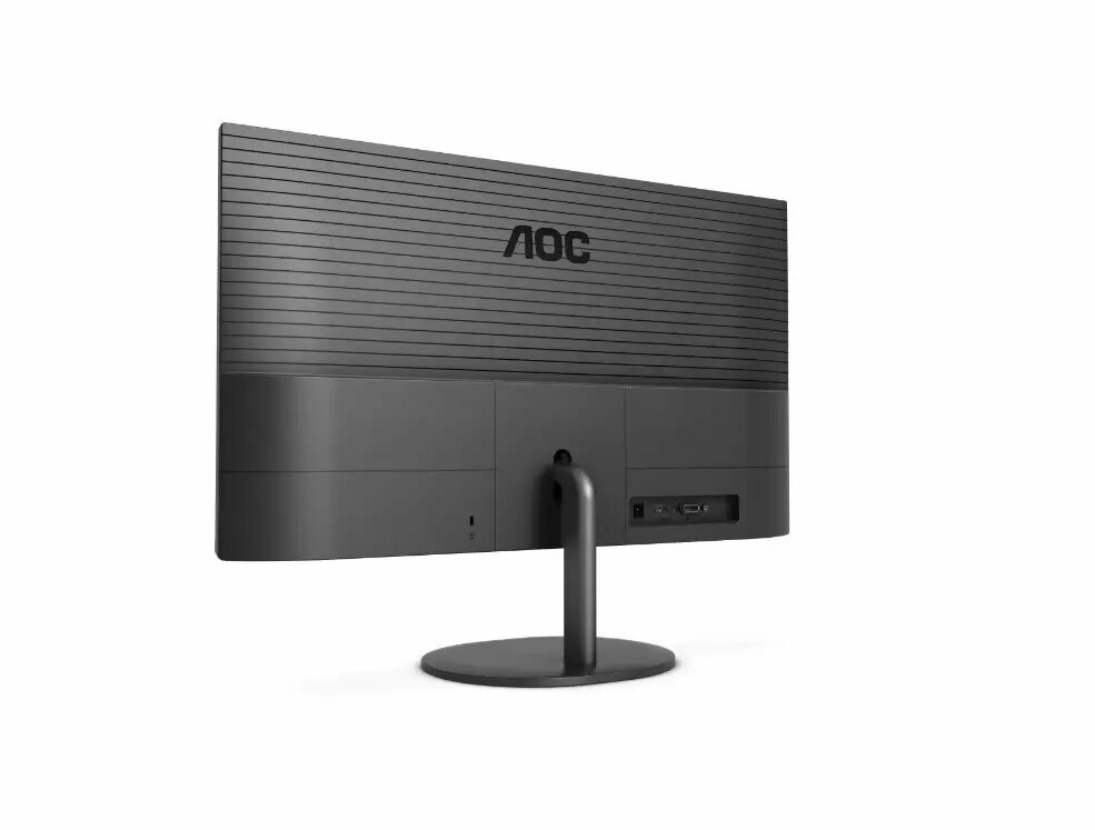 Задняя панель монитора имеет необычную рельефную поверхность. На ней изображен логотип AOC и расположены основные порты подключения. Также одной из важных особенностей этого монитора являются встроенные динамики, которые воспроизводят качественный звук и идеально подходят для использования во время важных деловых конференций.