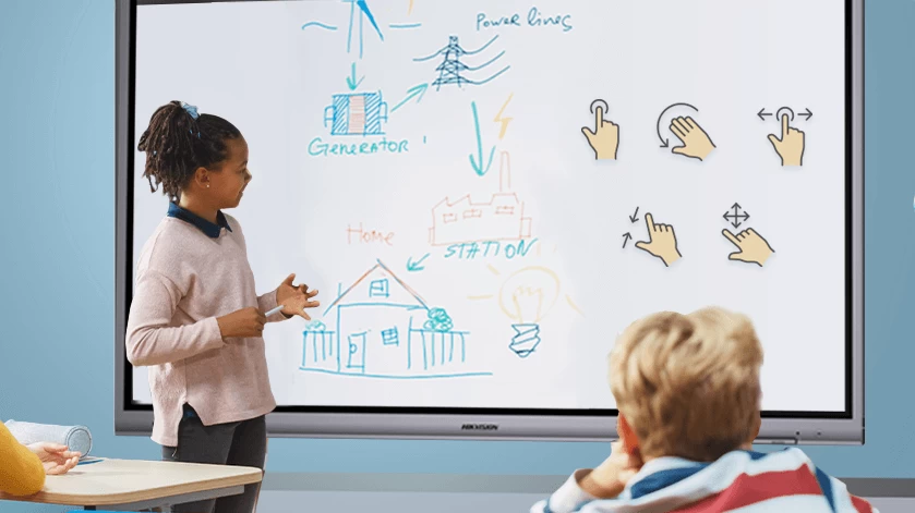Встроенное приложение позволяет размещать комментарии и мгновенно сохранять результат на любых интерфейсах. Система интерактивной доски может регистрировать до 20 одновременных точек касания, что допускает одновременное отображение различных мнений.