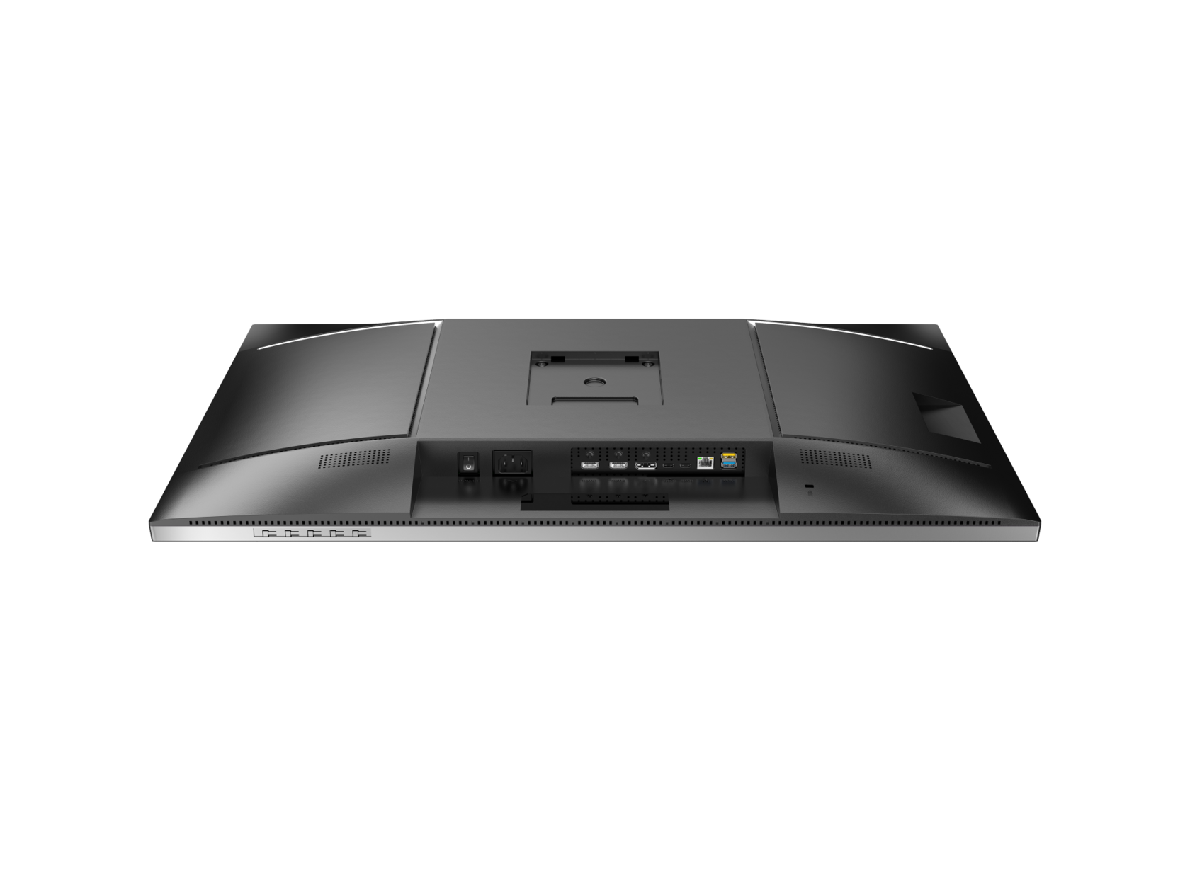На тыльной стороне располагается удобный джойстик управления меню и богатый набор интерфейсов. Кроме того, в конструкции предусмотрен встроенный KVM-переключатель, позволяющий оперативно переключаться между двумя источниками изображения, используя одну клавиатуру и мышь. Это решение удобно в гибридной работе – например, с ПК и ноутбуком