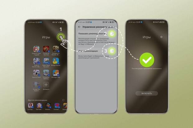 Чтобы удалить ненужную папку, откройте ее, нажмите на шестеренку в верхнем правом углу, выберите пункт меню «Управление рекомендациями» и отключите показ рекомендуемых приложений. В этой папке они больше не будут отображаться, а вы затем в любой момент можете ее удалить. Либо заполнить чем-нибудь другим.